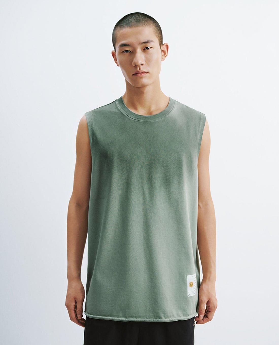 - Chi tiết nhãn trang trí nhỏ ở gấu áo tạo điểm nhấn tinh tế