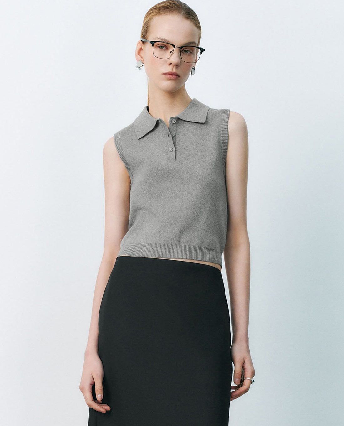 Áo sát nách nữ cổ bẻ dệt kim