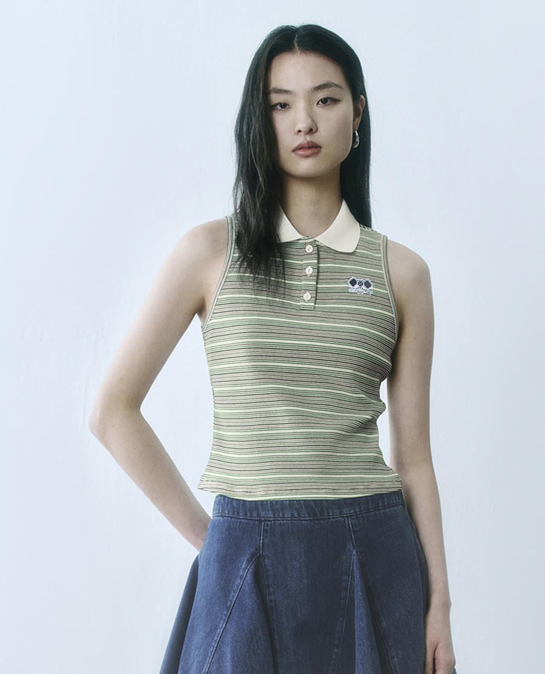 Áo sát nách nữ cổ bẻ kẻ sọc