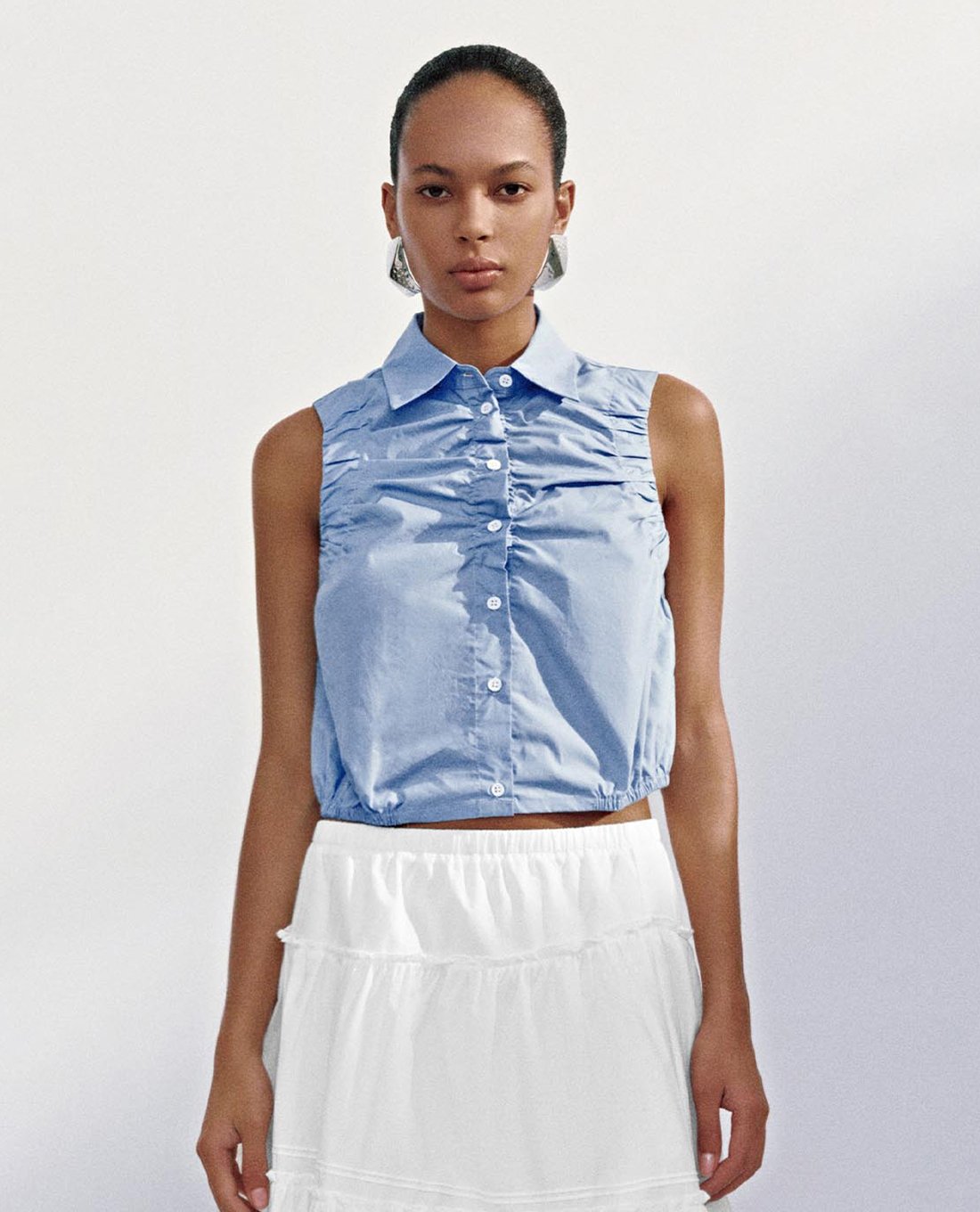 - Thân áo được xếp ly và nhún bèo phồng nhẹ