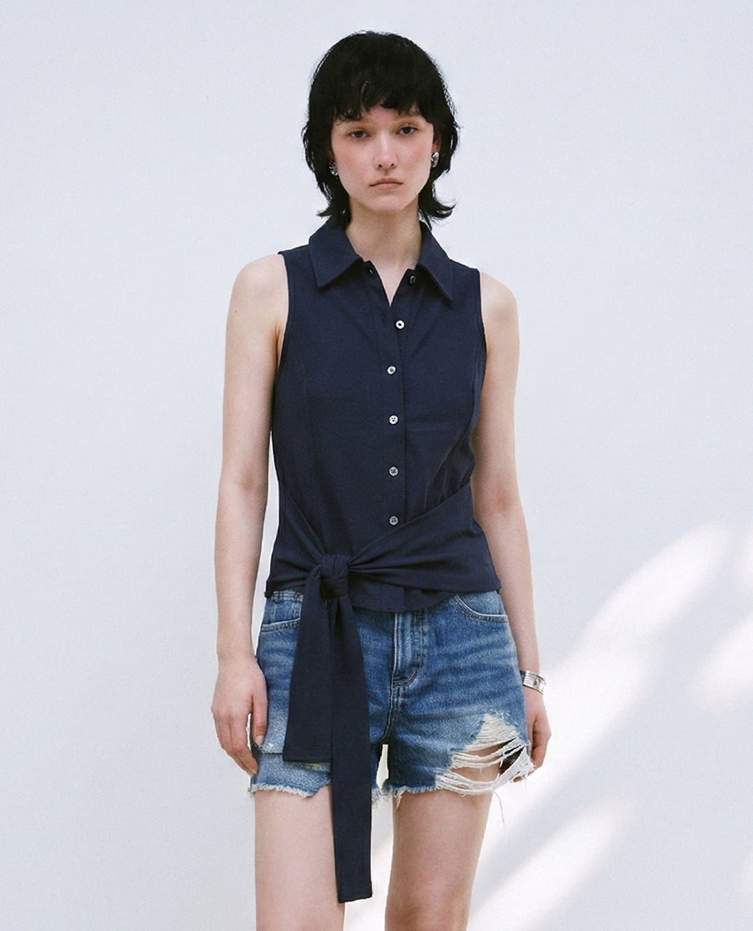 Áo sát nách nữ cổ sơ mi thắt eo