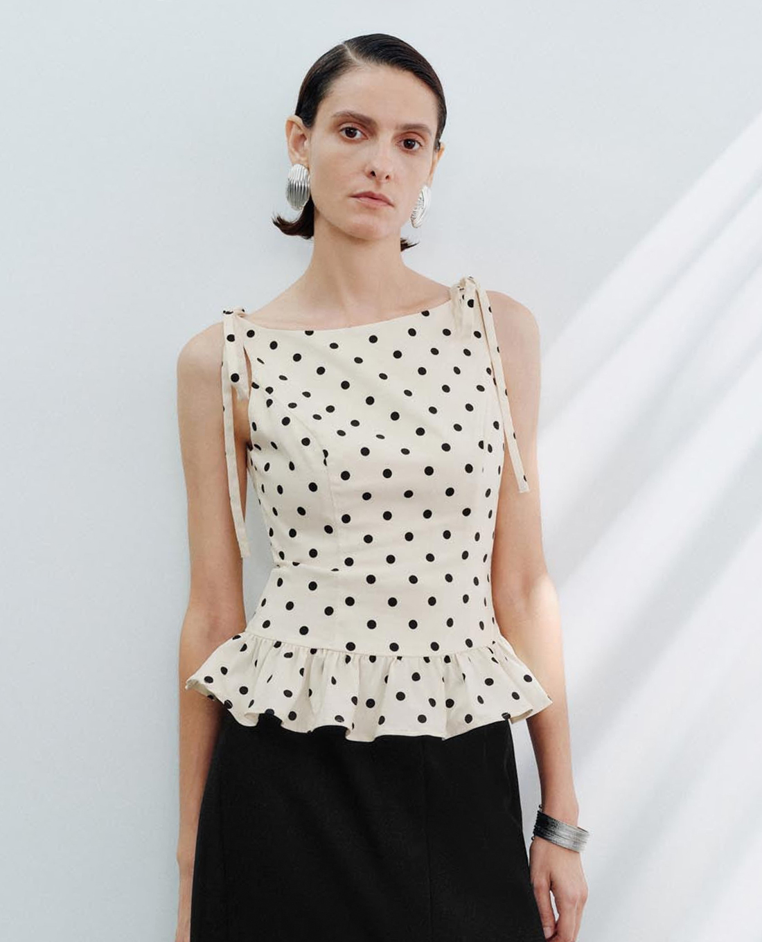 - Họa tiết chấm bi cổ điển, dễ thương và dễ phối hợp với mọi phong cách