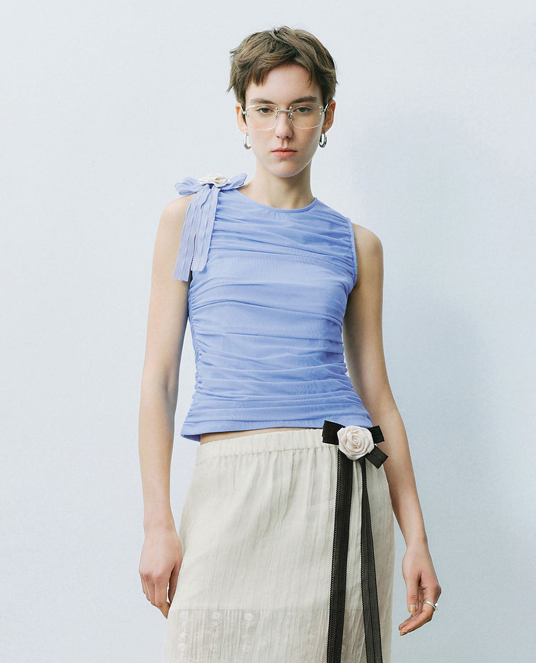 - Đính nơ ở một bên vai áo tạo điểm nhấn