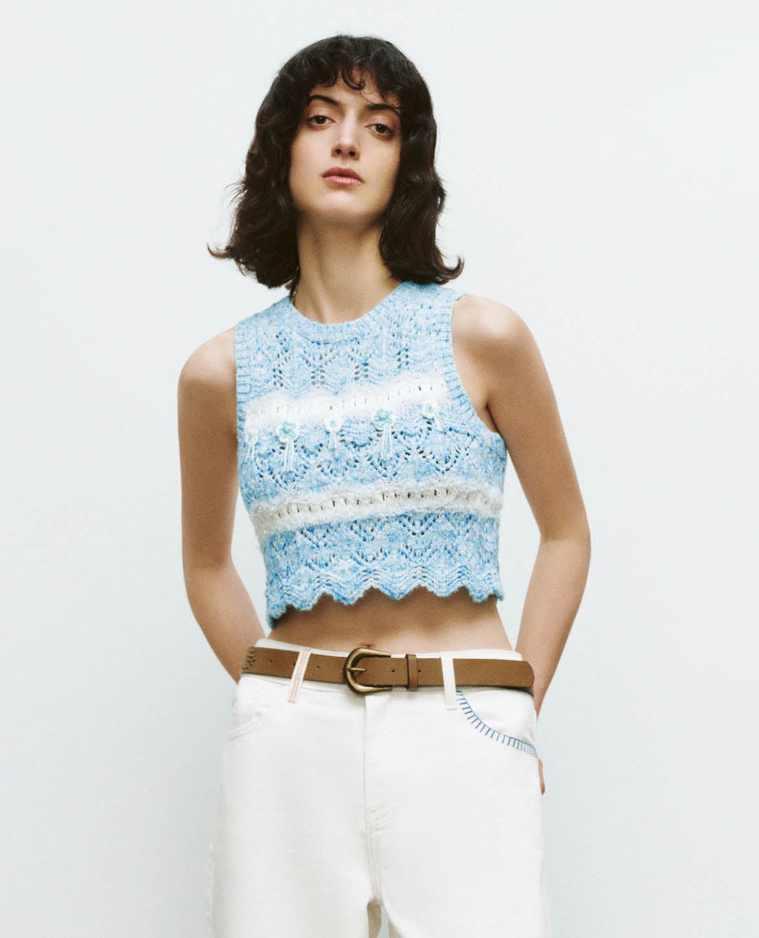 Áo sát nách nữ cổ tròn Crochet