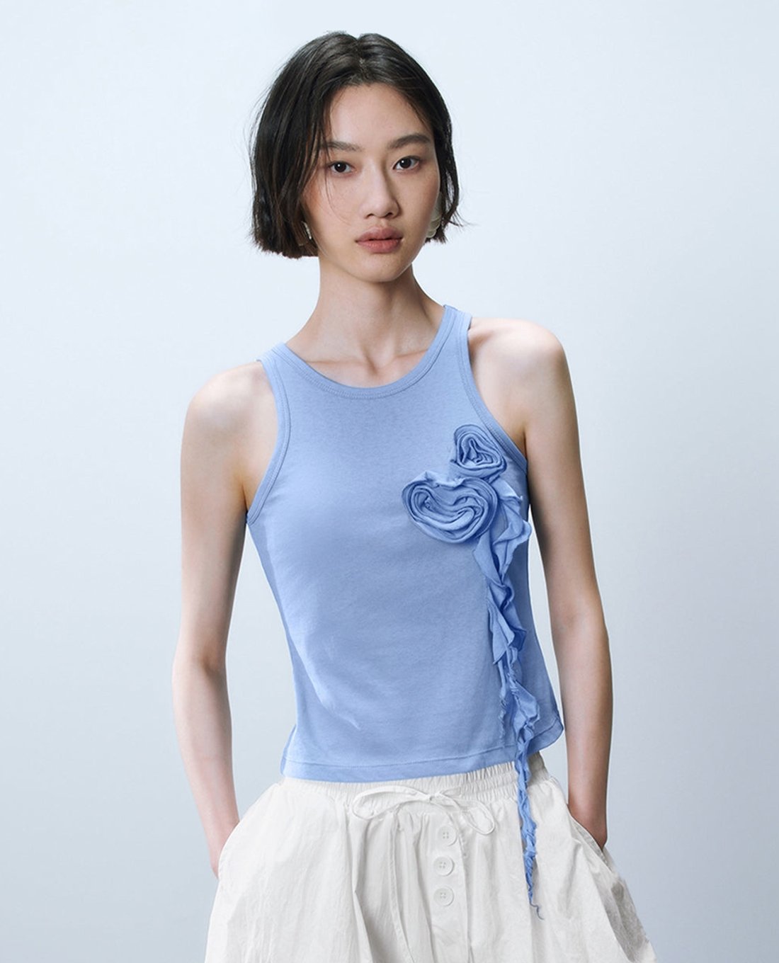 - Điểm nhấn là chi tiết hoa vải 3D thủ công độc đáo bên ngực trái
