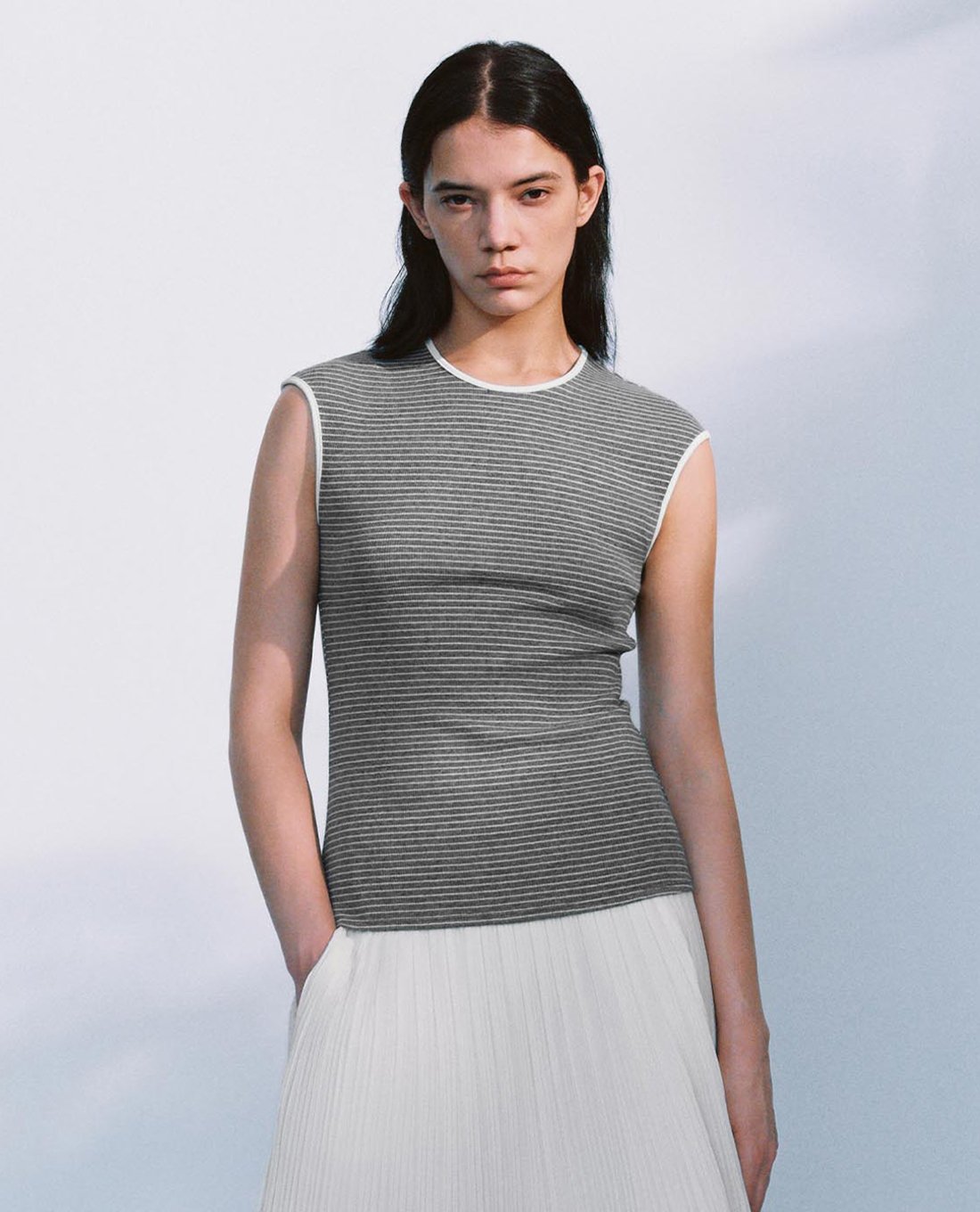 Áo sát nách nữ cổ tròn kẻ sọc