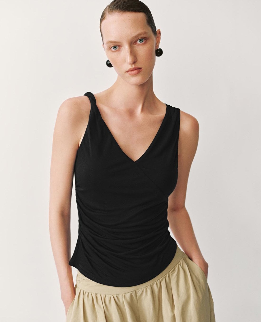 - Thiết kế cổ V thanh lịch tôn lên xương quai xanh