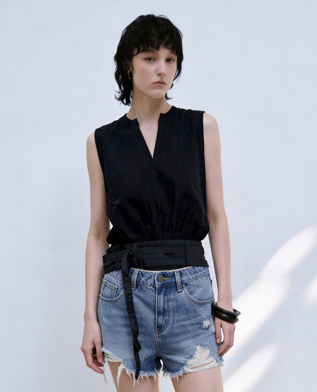 - Chi tiết đai bản lớn tạo điểm nhấn định hình vòng eo