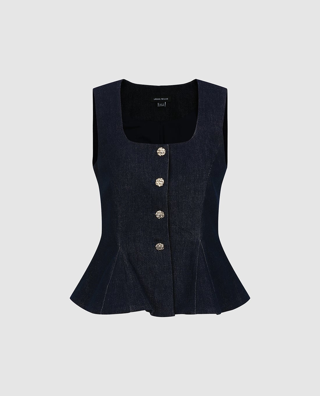 Áo sát nách nữ denim cổ vuông phối nút