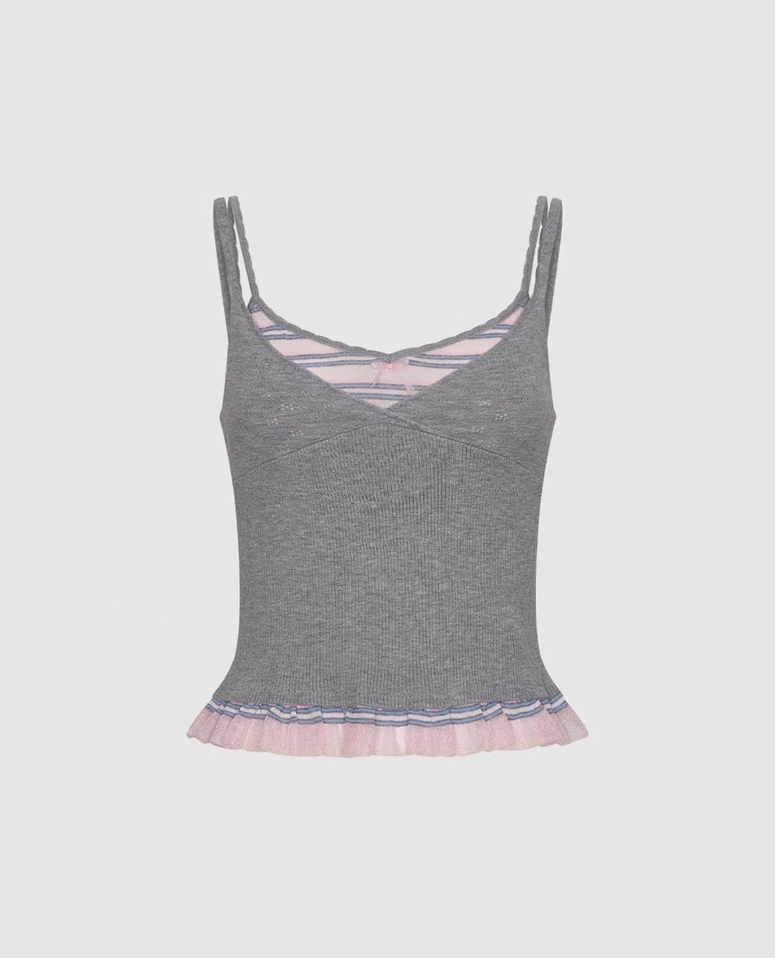 Áo hai dây nữ dệt kim phối viền bèo nhún