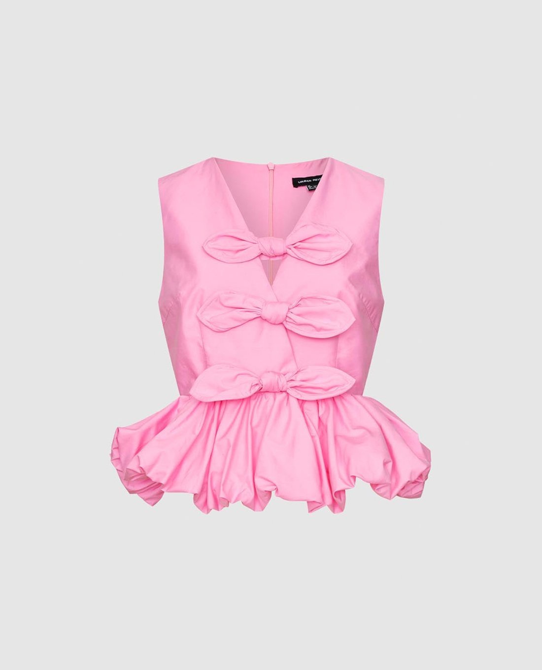 - Thân áo được trang trí bằng ba chiếc nơ lớn xếp dọc trung tâm