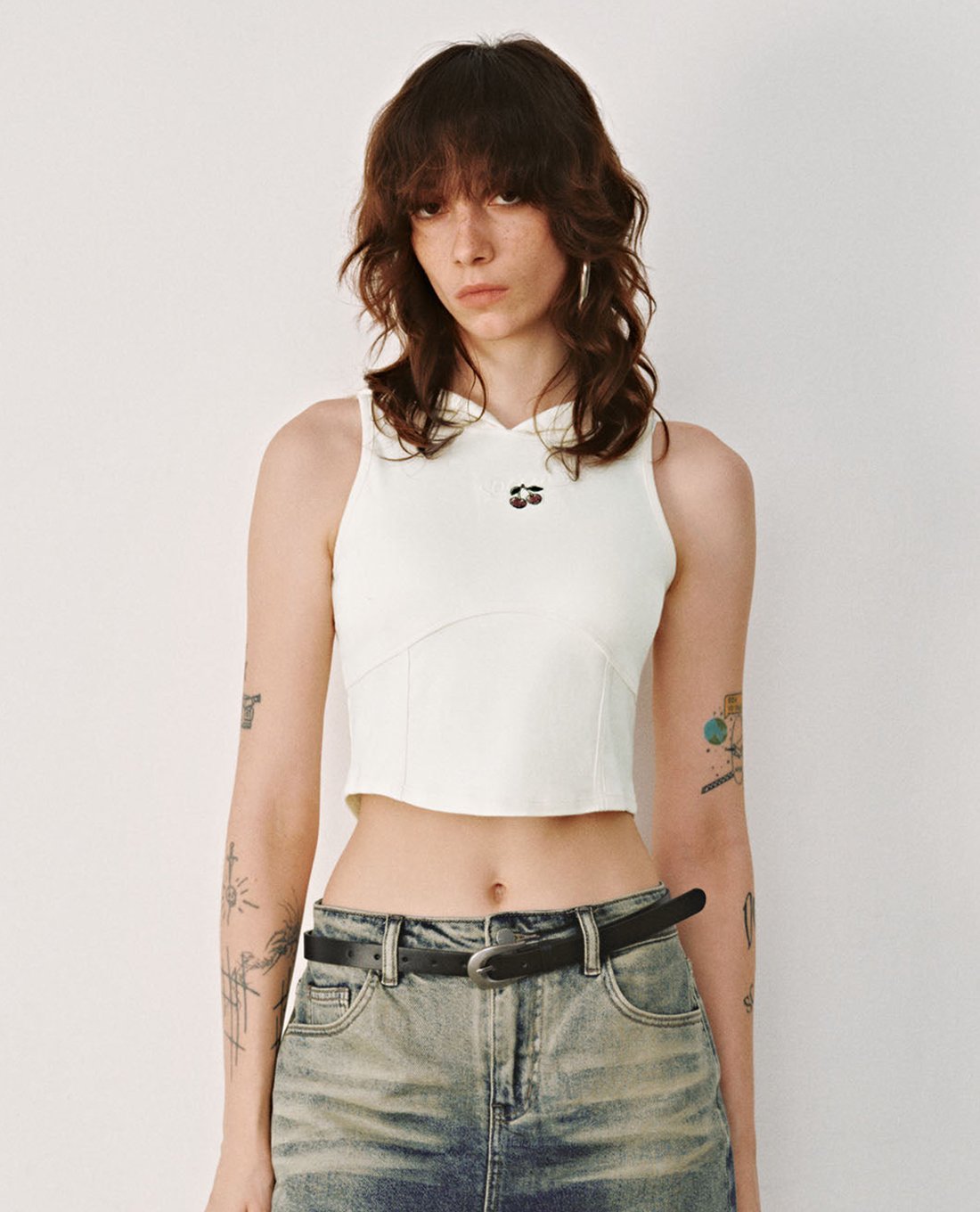 - Họa tiết nhỏ hình cherry cùng dòng chữ tạo điểm nhấn
