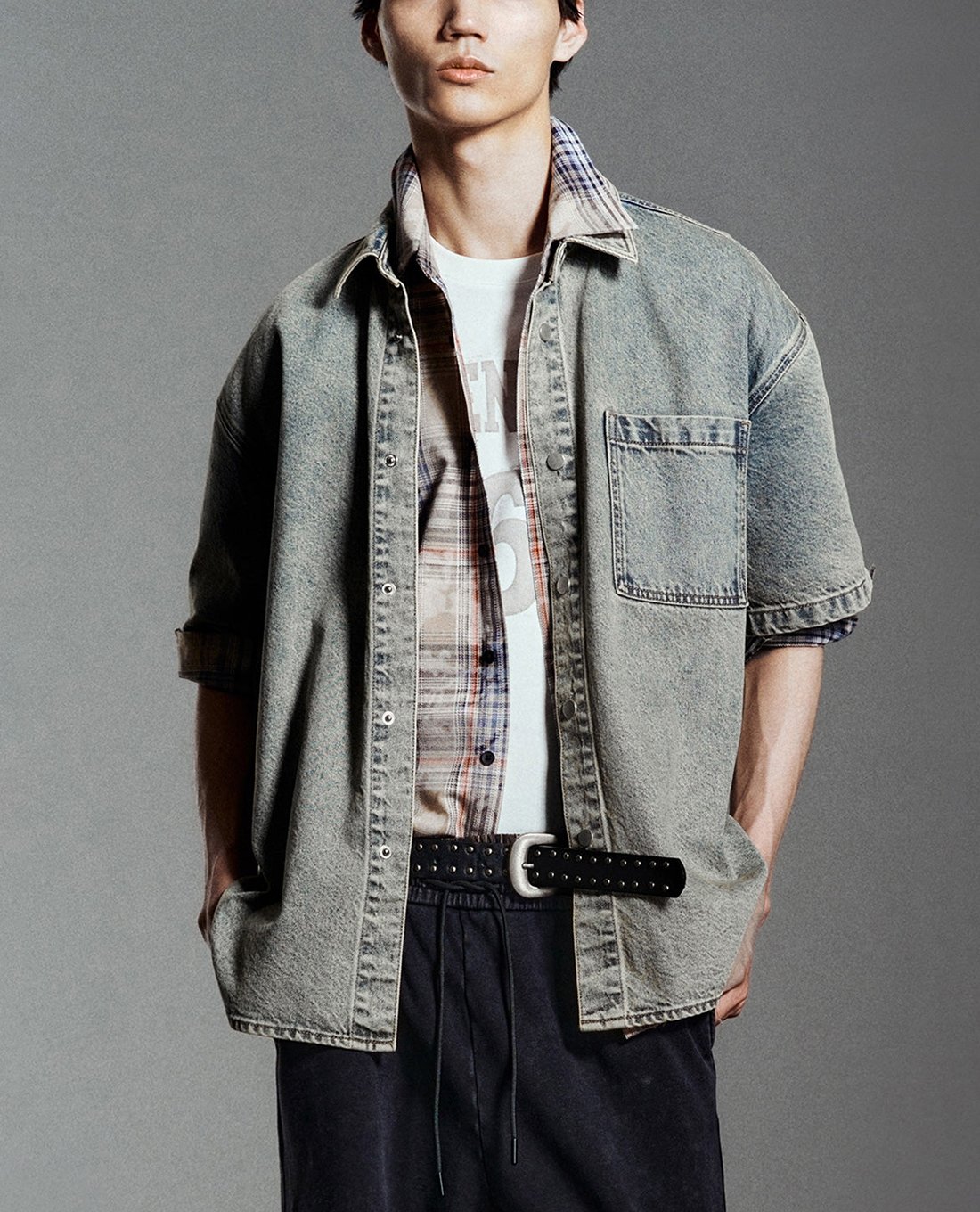 Áo sơ mi denim nam tay ngắn hiện đại