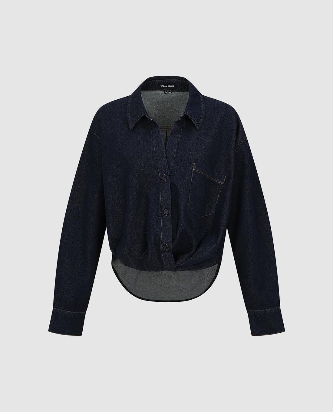 Áo sơ mi denim nữ cổ bẻ tay dài