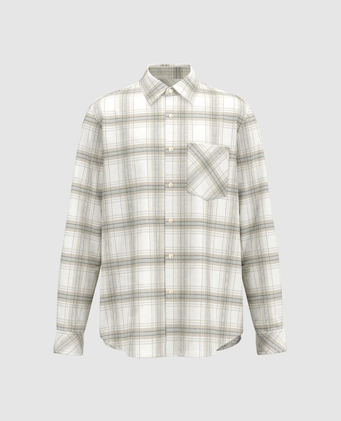 - Thiết kế sơ mi cổ điển với họa tiết caro trung tính