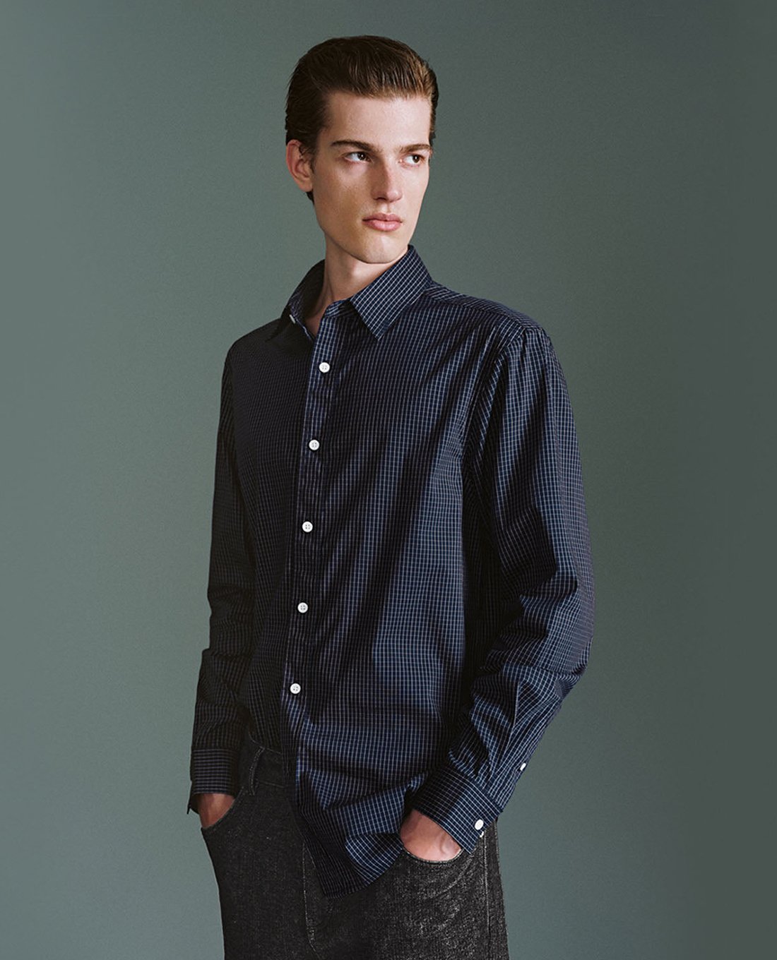 Áo sơ mi nam cổ bẻ tay dài phối caro