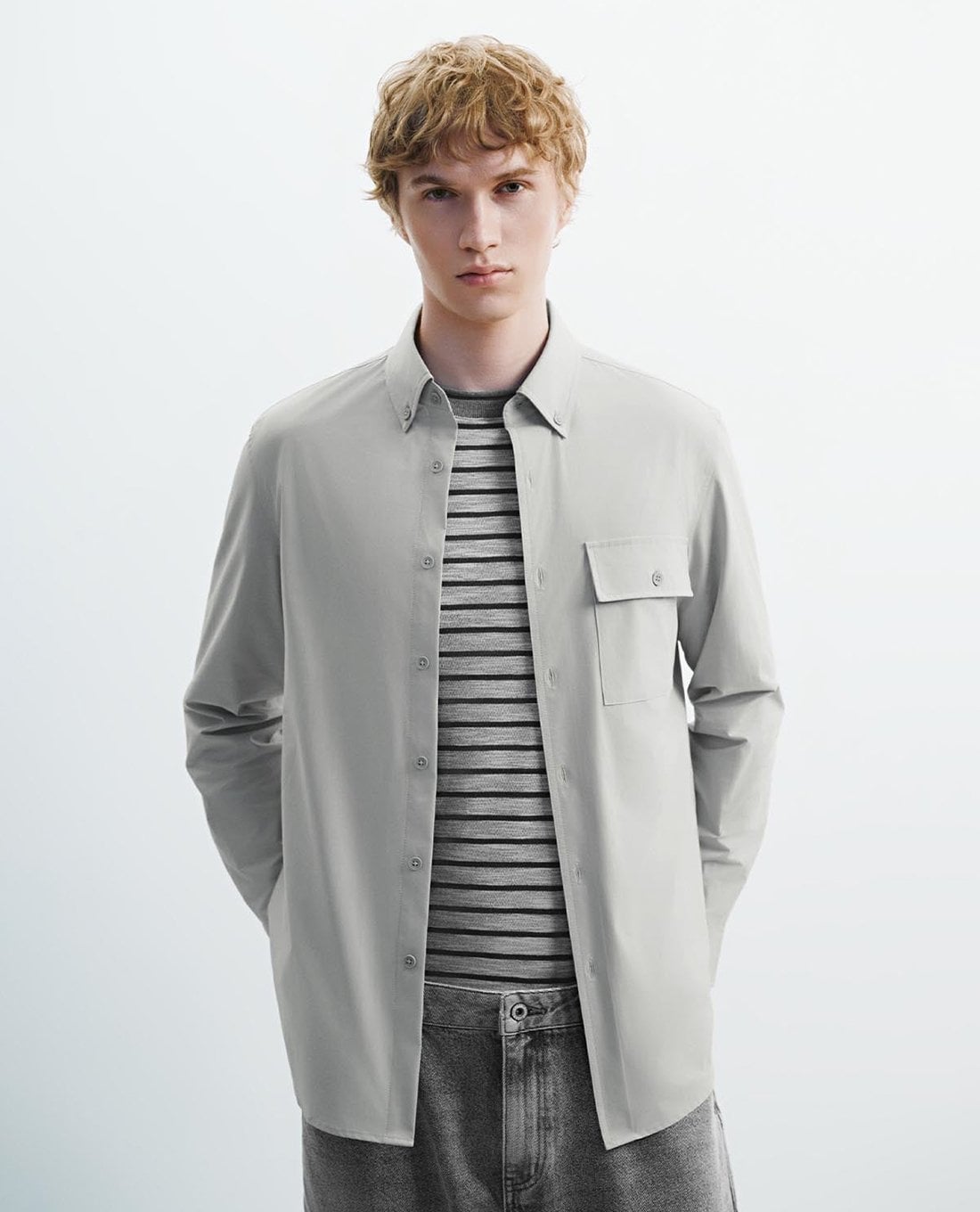 Áo sơ mi nam cổ bẻ tay dài phối túi hộp