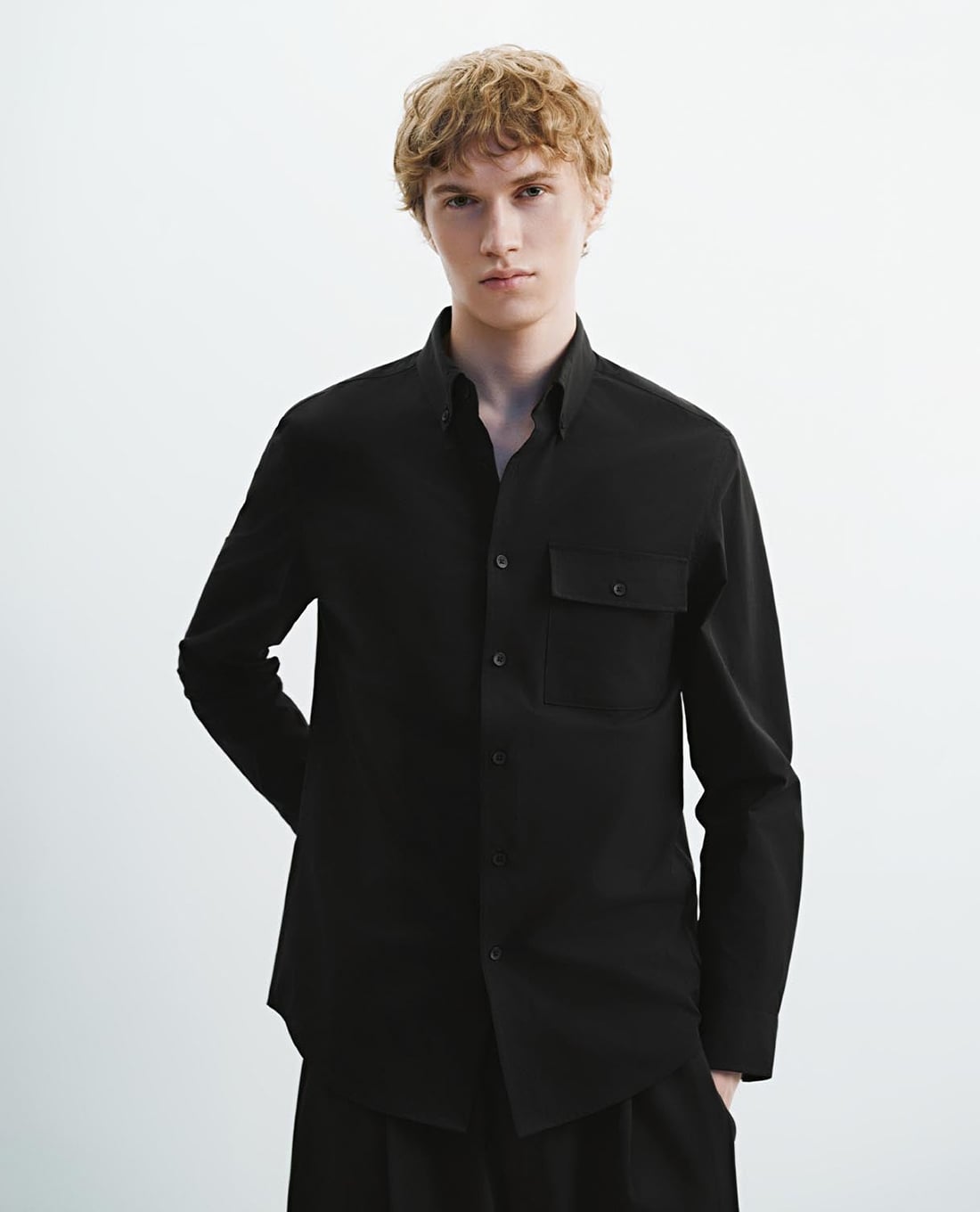 Áo sơ mi nam cổ bẻ tay dài phối túi hộp