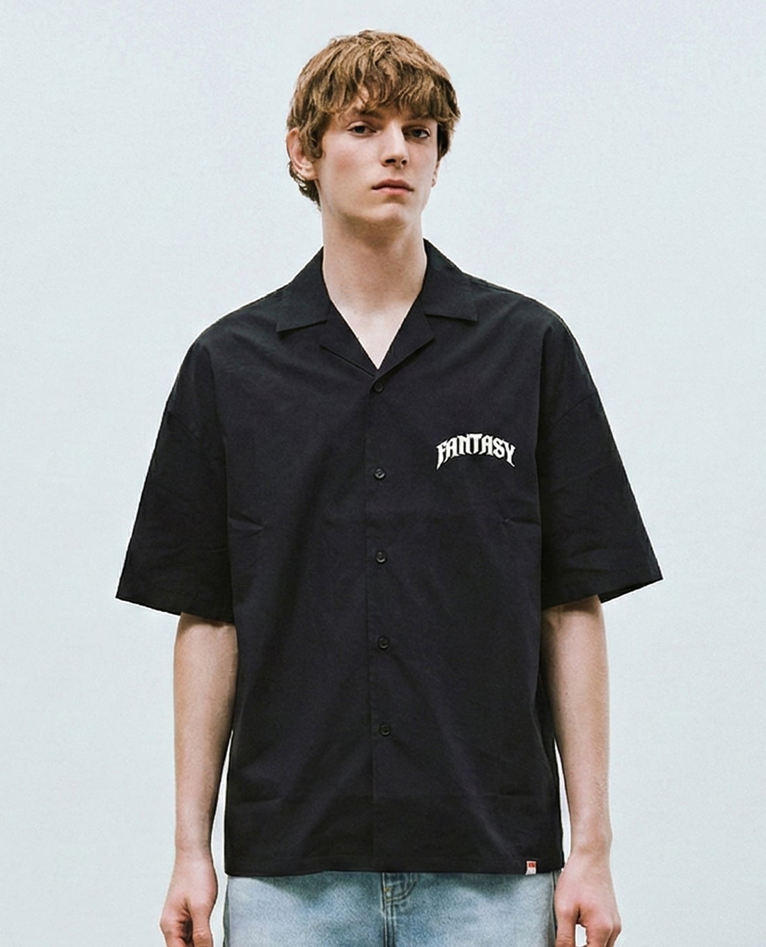 Áo sơ mi nam cổ bẻ tay ngắn in chữ