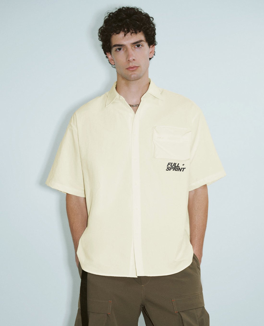 Áo sơ mi nam cổ bẻ tay ngắn in chữ
