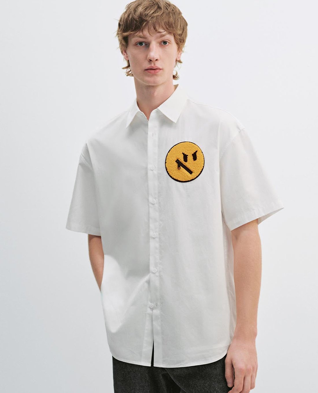 - Họa tiết biểu cảm mặt cười thêu nổi độc đáo, phá cách