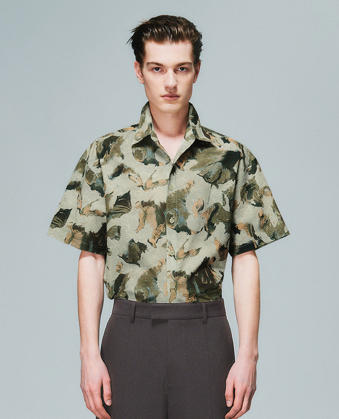Áo sơ mi nam cổ bẻ tay ngắn phối hoạ tiết