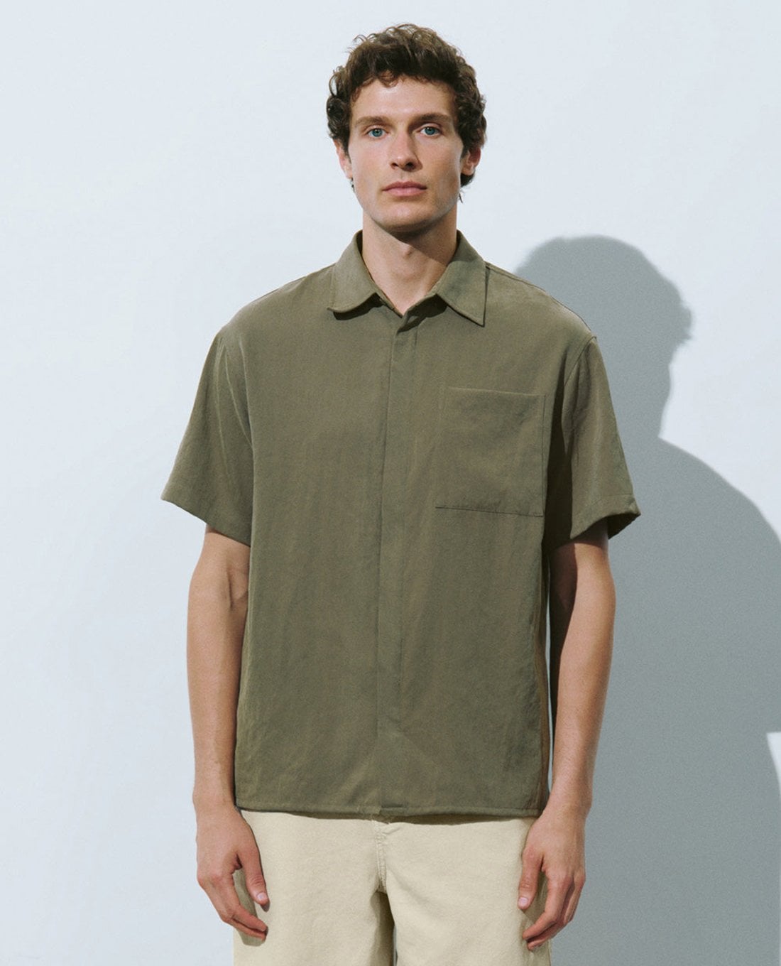 Áo sơ mi nam cổ bẻ tay ngắn phối túi Button Up Straight