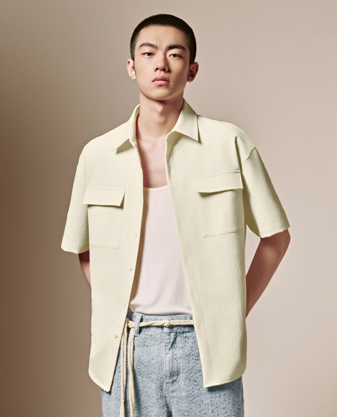 Áo sơ mi nam cổ bẻ tay ngắn phối túi hộp