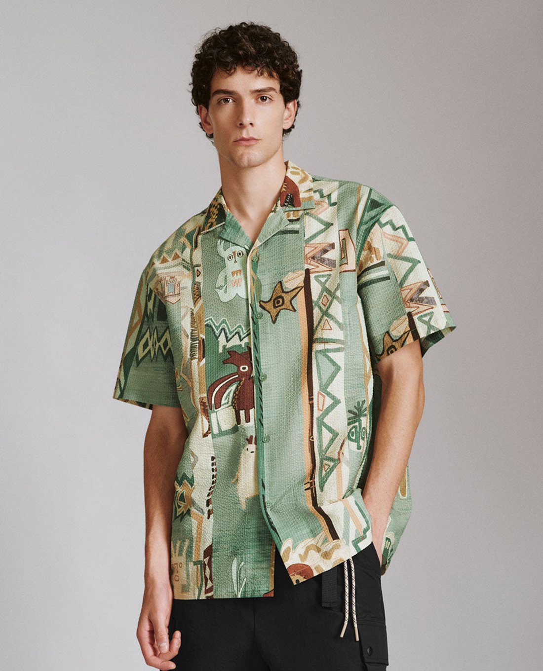 Áo sơ mi nam cổ bẻ tay ngắn Printed Button Up Loose