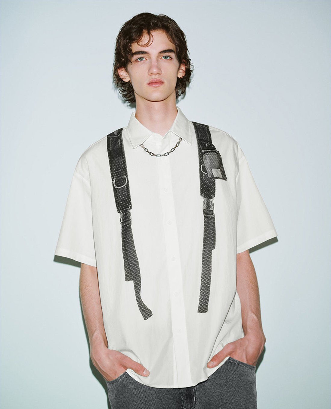 Áo sơ mi nam cổ bẻ tay ngắn Printed Button Up Straight