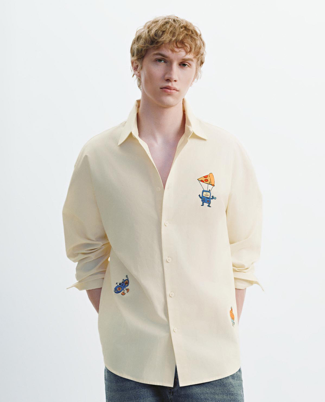 Áo sơ mi nam tay dài họa tiết hoạt hình