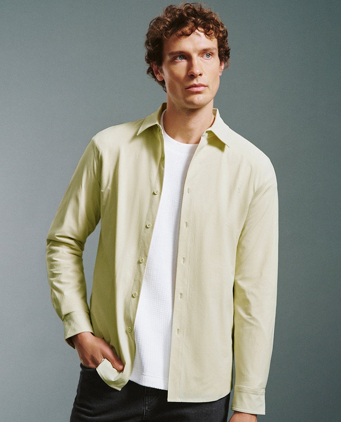 - Kiểu dáng áo sơ mi cổ bẻ, tay dài bo gấu thanh lịch