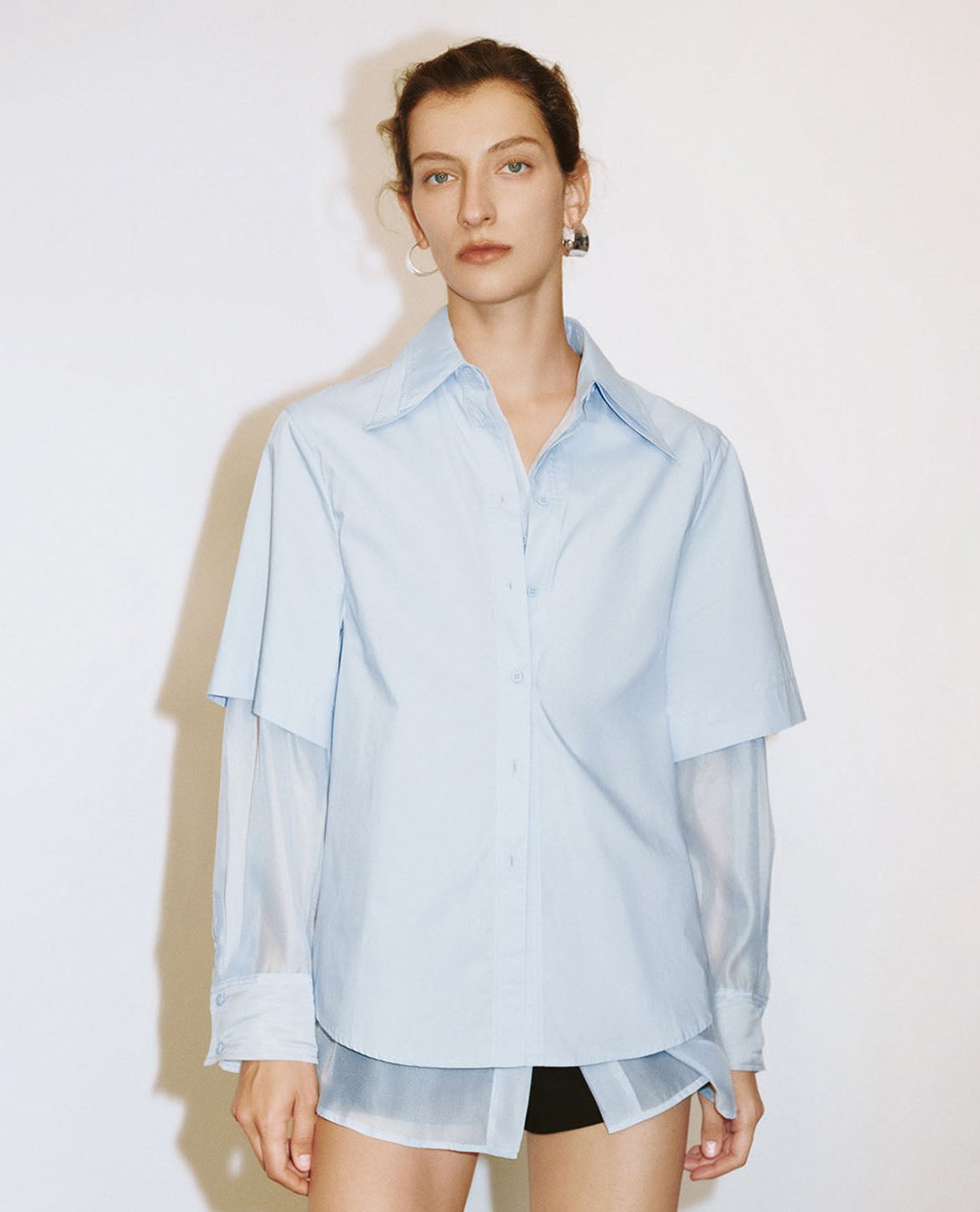 Áo sơ mi nữ cổ bẻ tay dài 2 trong 1
