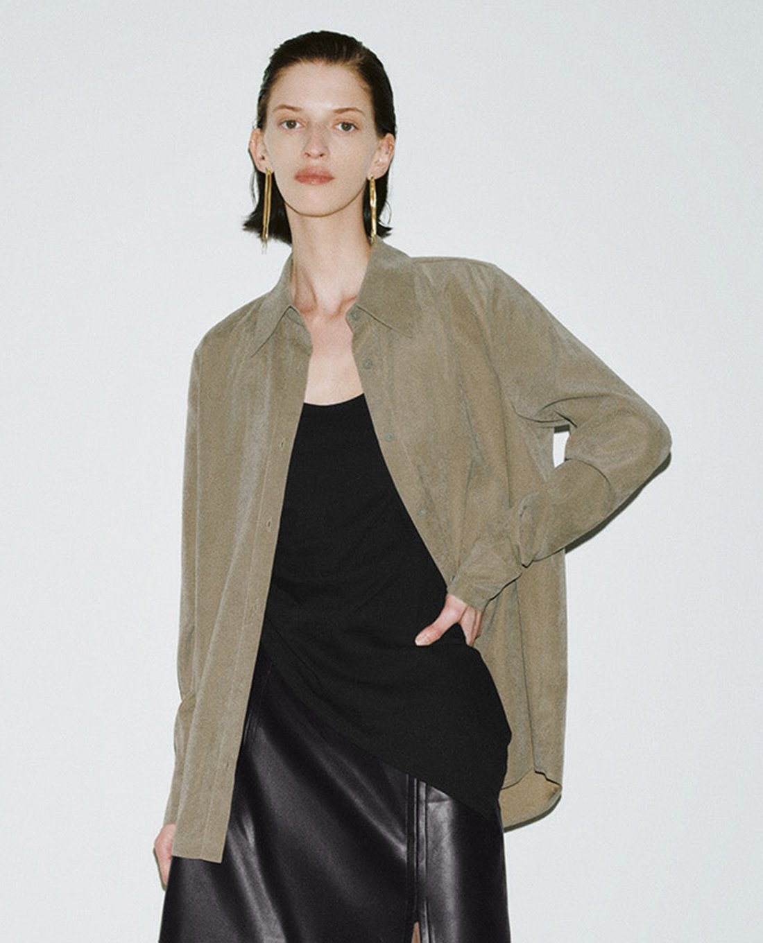 Áo sơ mi nữ cổ bẻ tay dài Button Up Loose