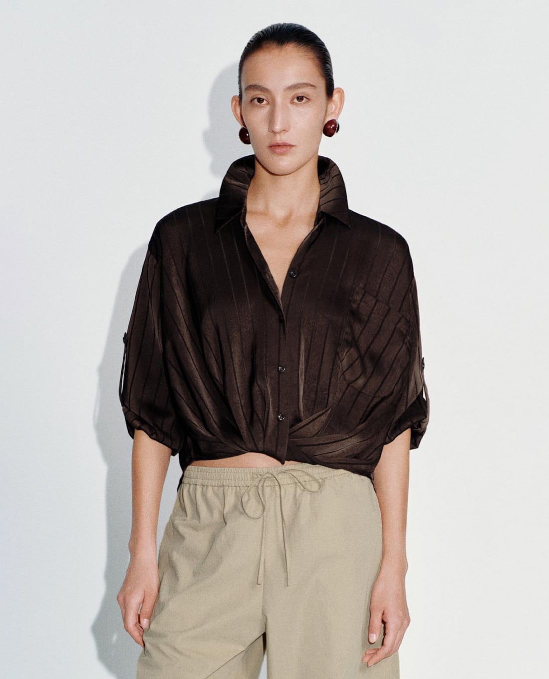 - Chi tiết xoắn eo tạo điểm nhấn độc đáo cho tổng thể