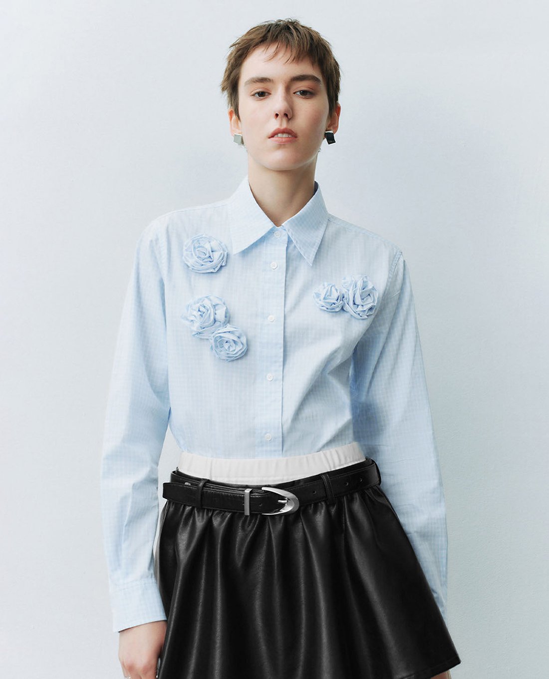 Áo sơ mi nữ cổ bẻ tay dài đính hoa