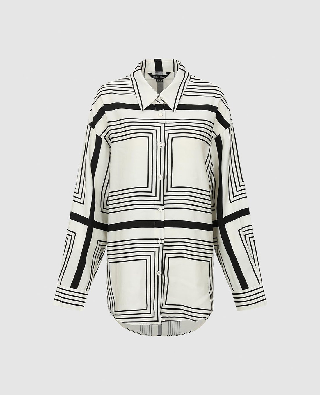 Áo sơ mi nữ cổ bẻ tay dài họa tiết kẻ vuông