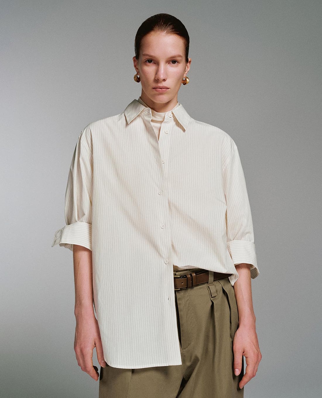 Áo sơ mi nữ cổ bẻ tay dài kẻ sọc