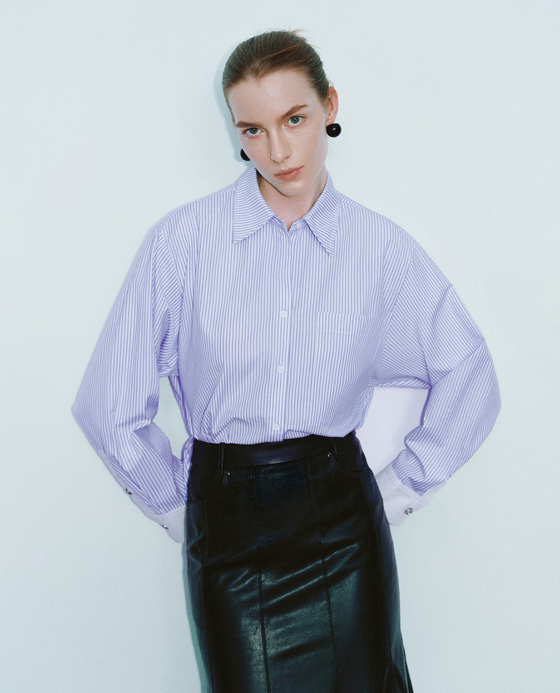 Áo sơ mi nữ cổ bẻ tay dài kẻ sọc