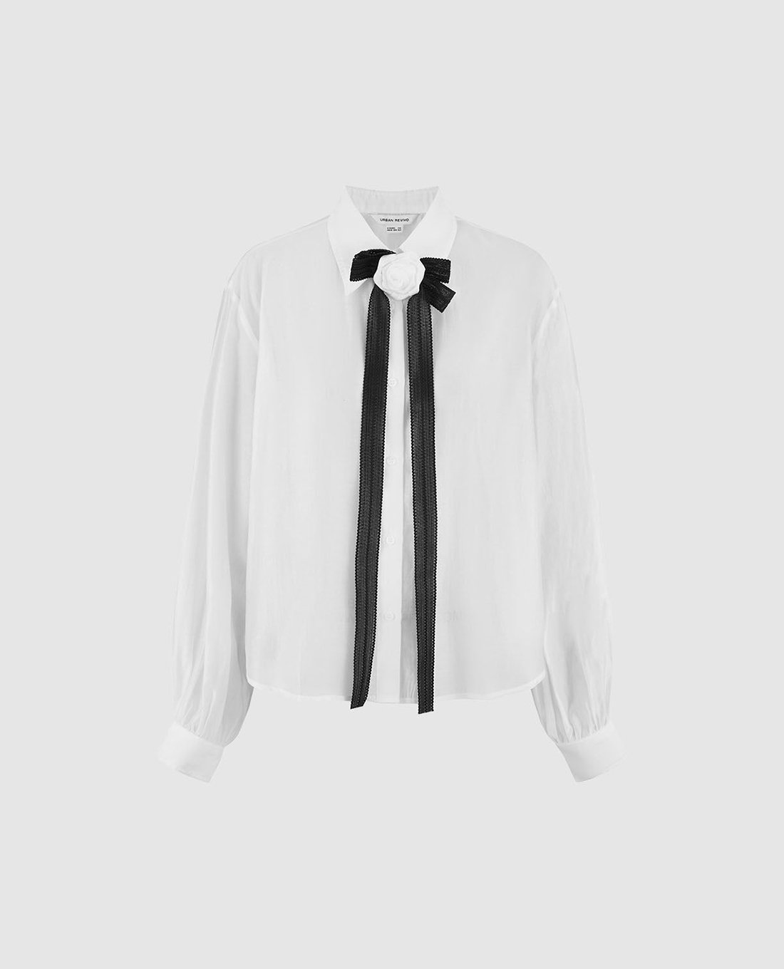 Áo sơ mi nữ cổ bẻ tay dài phối nơ