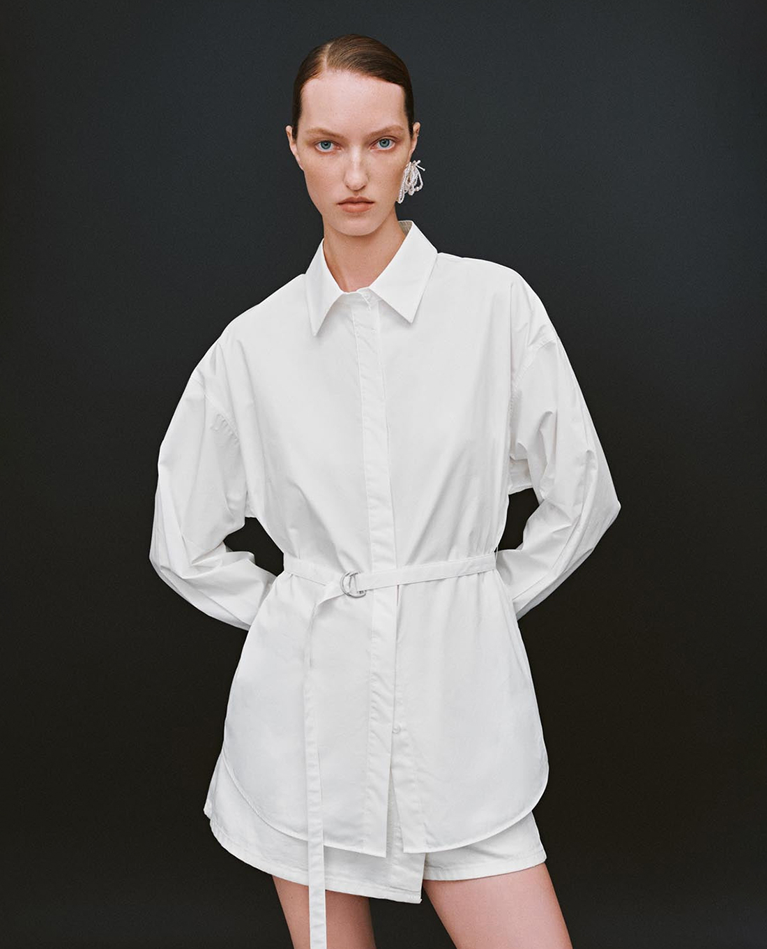 Áo sơ mi nữ cổ bẻ tay dài phối thắt lưng