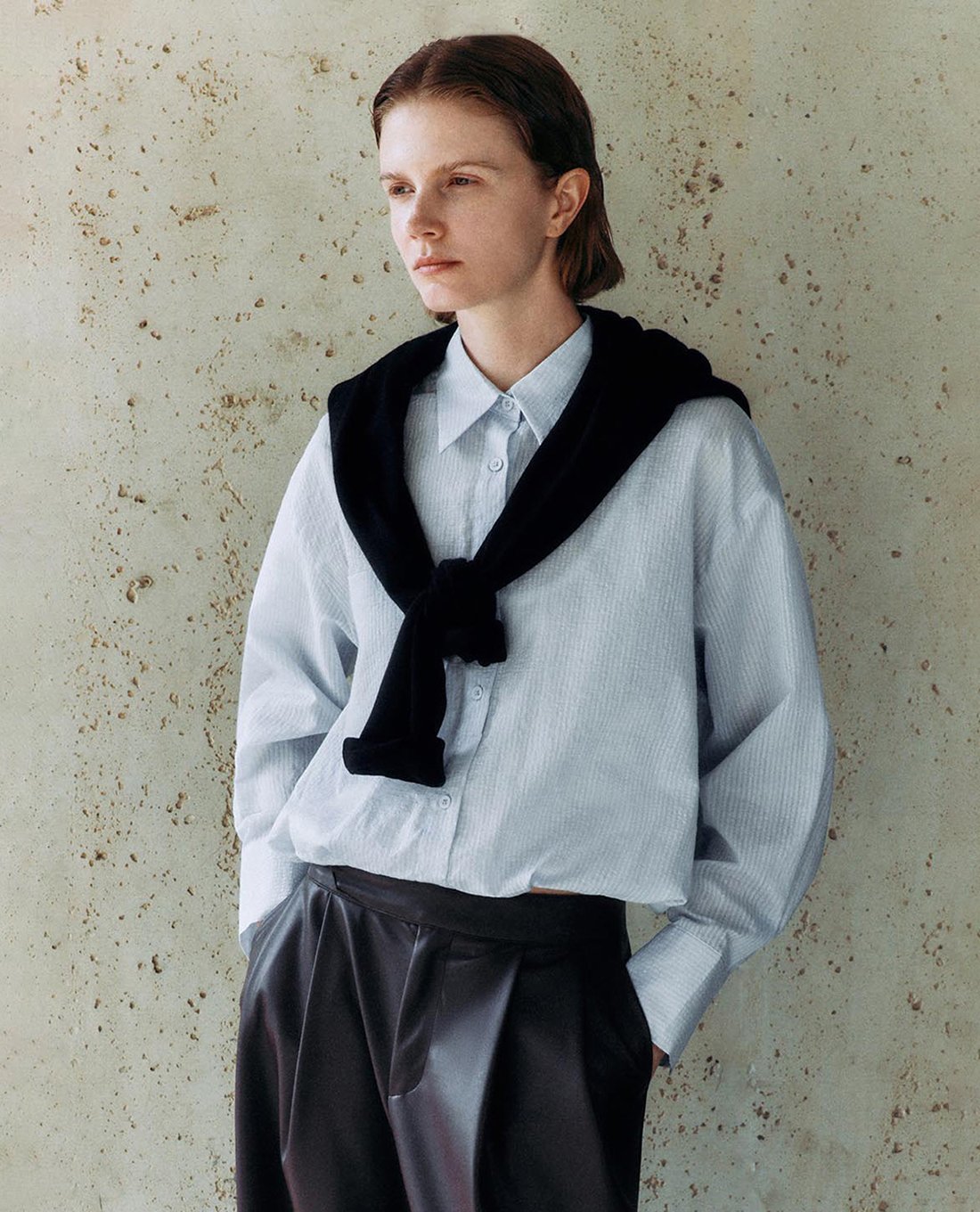 Áo sơ mi nữ cổ bẻ tay dài phom croptop