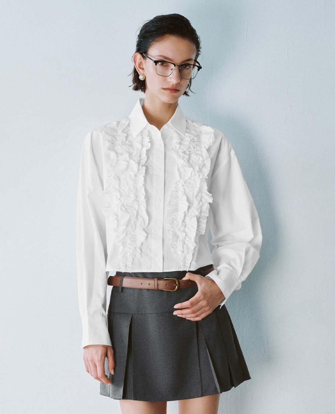 Áo sơ mi nữ cổ bẻ tay dài phom croptop