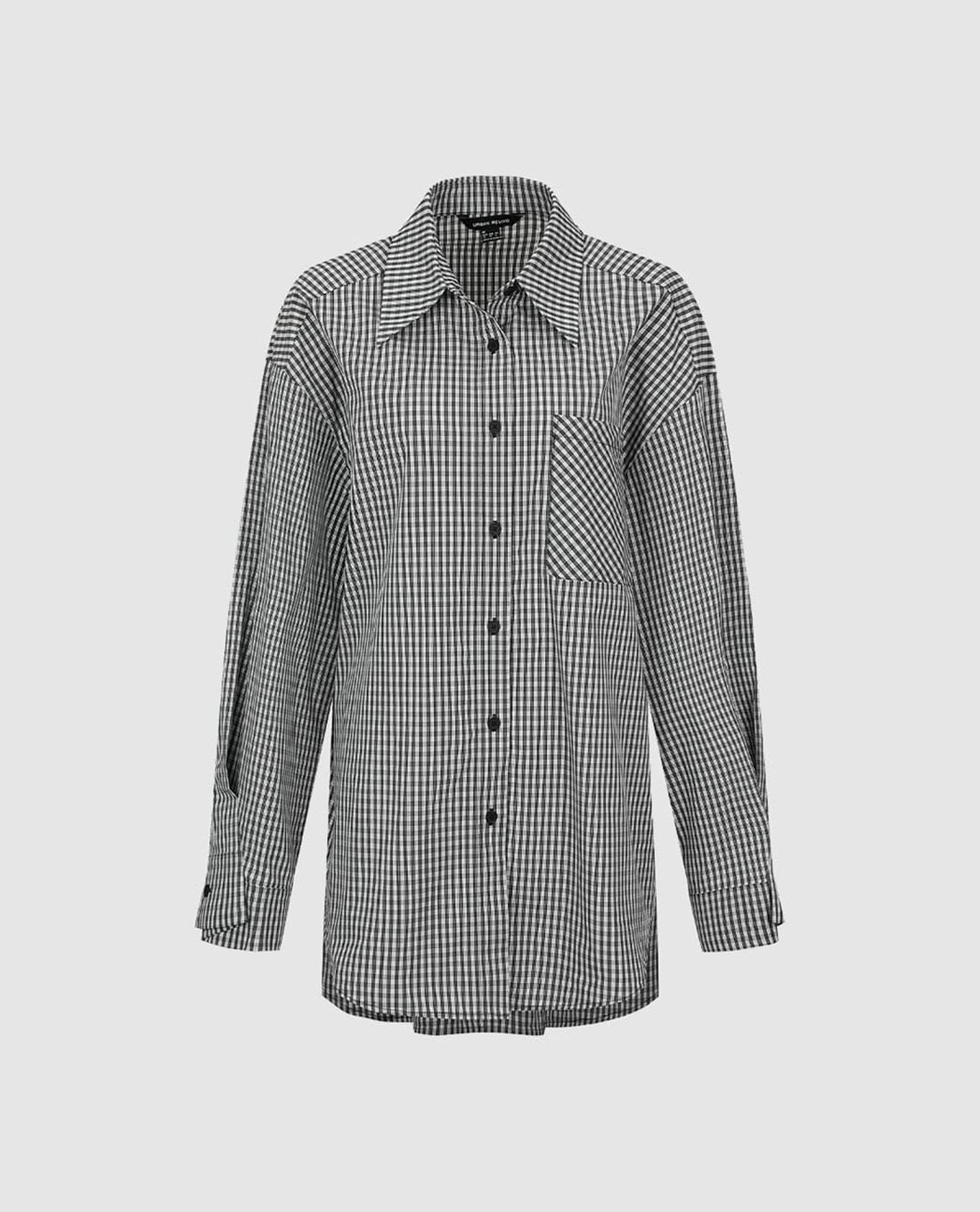 Áo sơ mi nữ cổ bẻ tay dài sọc caro