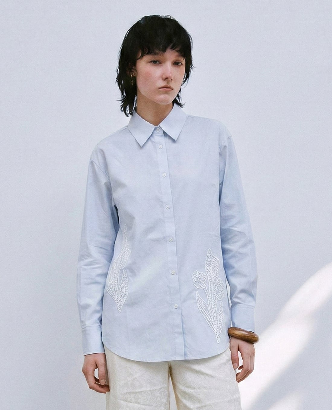 Áo sơ mi nữ cổ bẻ tay dài thêu hoa