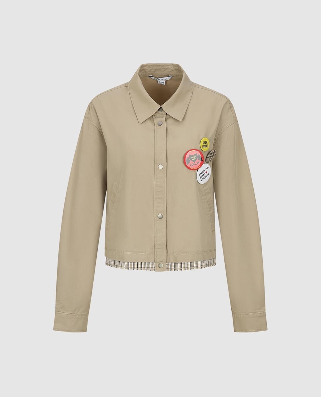 - Phần lai áo phối họa tiết kẻ caro mang lại nét độc đáo