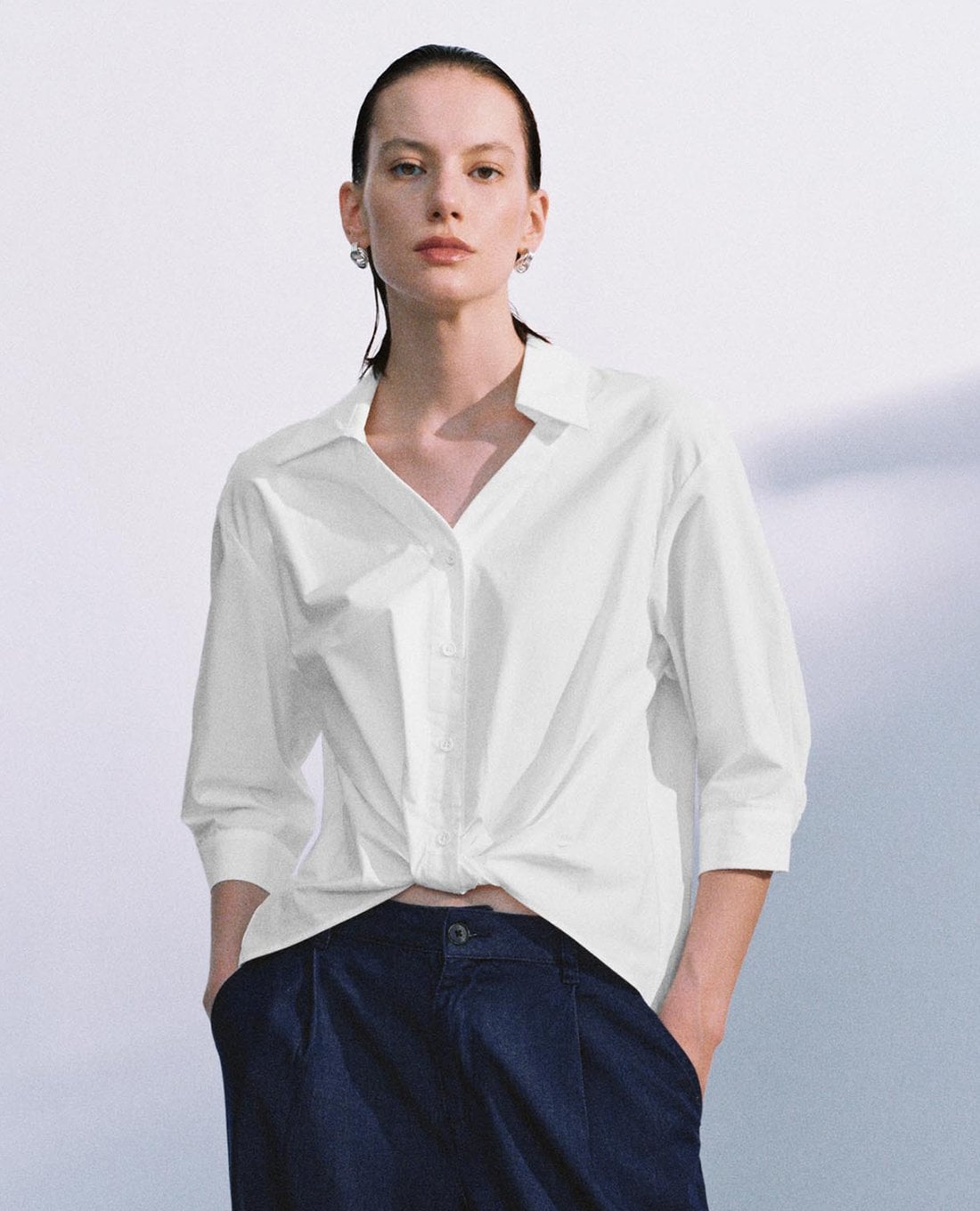- Kiểu dáng sơ mi cách điệu với chi tiết xoắn eo tinh tế