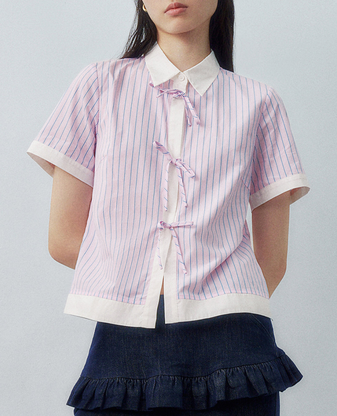 Áo sơ mi nữ cổ bẻ tay ngắn Lace-Up