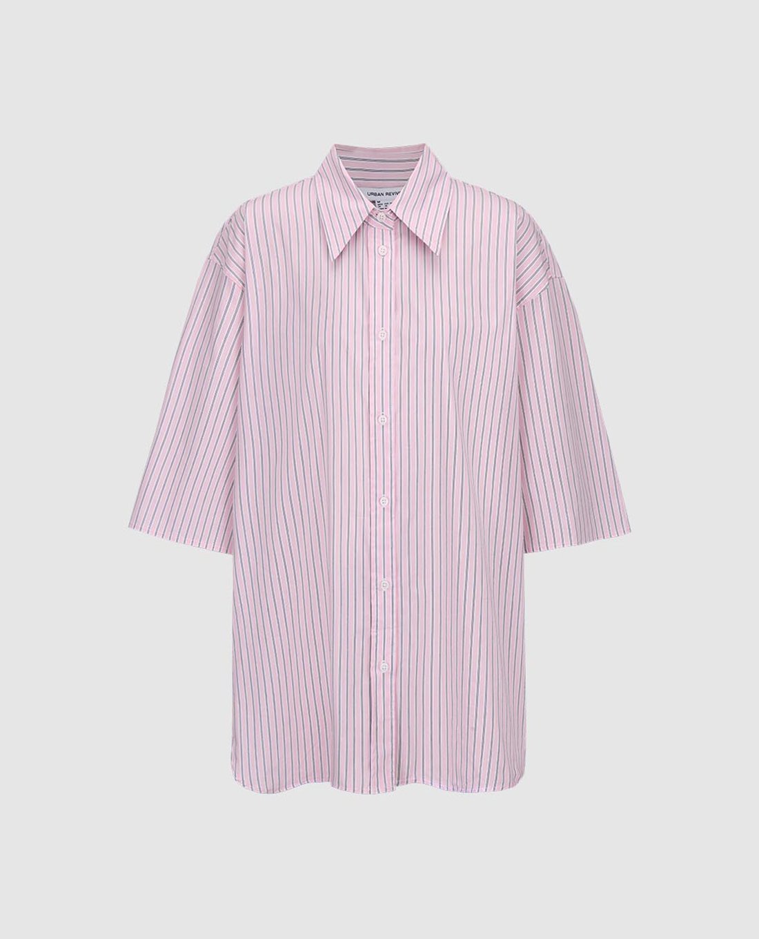 Áo sơ mi nữ cổ bẻ tay ngắn phối sọc