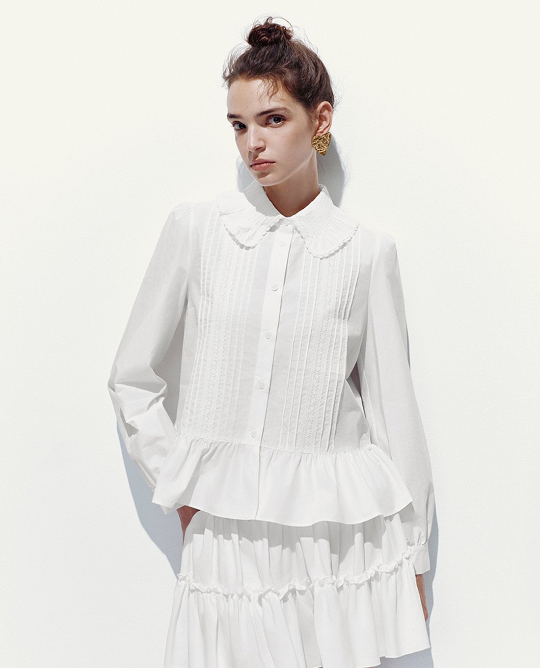Áo sơ mi nữ cổ bèo tay dài dáng xoè